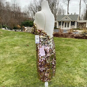 NWT Anthropologie Aidan Mattox Starla Sequin Midi Dress Gold Cocktail Formal 8