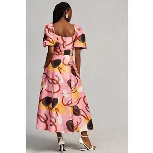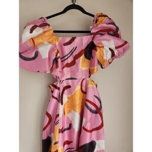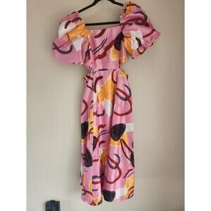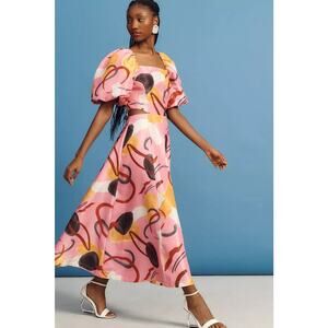 NWT Anthropologie Aureta Studio Printed Puff-Sleeve Cutout Dress Size XSP pink #NA410