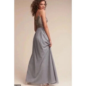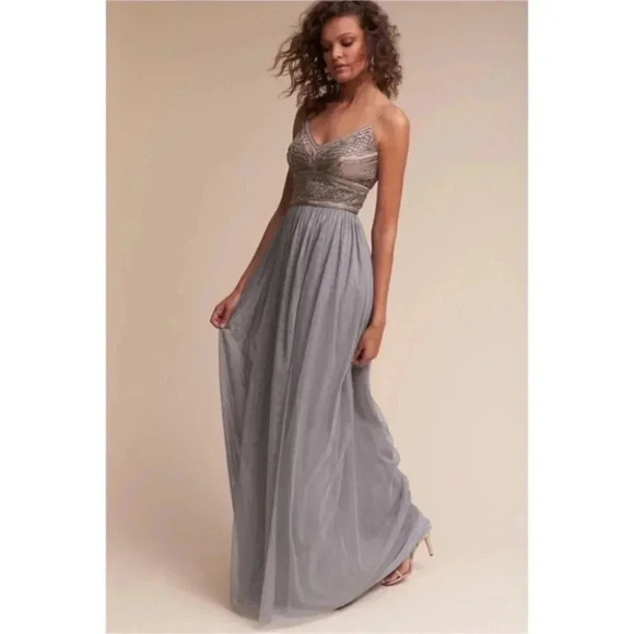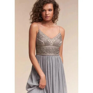 NWT Anthropologie BHLDN Adrianna Papell Aida Maxi Dress in Silver Gray Beaded
