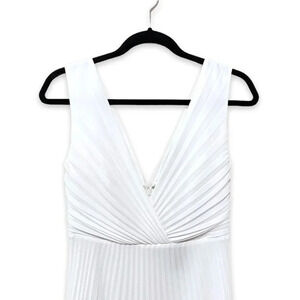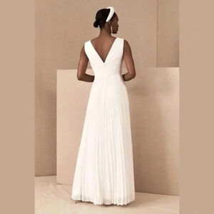 The gorgeously timeless Sloane White Plunge Maxi Dress from Anthropologie's BHLDN and Badgley Mischka! A deep V-neckline and matching back complete this elegantly pleated maxi dress. Perfect for a spring/summer wedding, or a beautiful yet elegant statement for your next event.