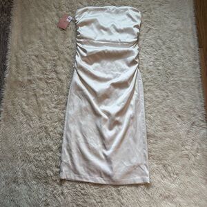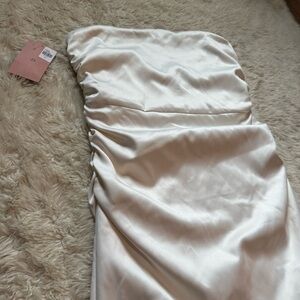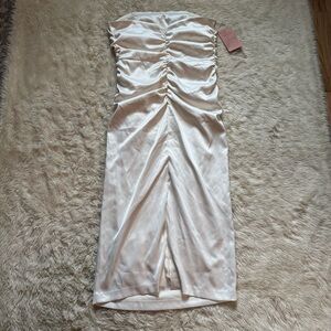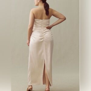 Rendered in stretch satin, the BHLDN Selena Strapless Midi Dress is an ensemble for all occasions. Effortlessly elegant, this dress features a strapless neckline and slip silhouette, allowing you to style it up or keep it simple for your next event.