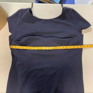 Clean lines and sleek contours define this cap-sleeve dress. Hugging in just the right places, it flares just at the knee for ease of movement.