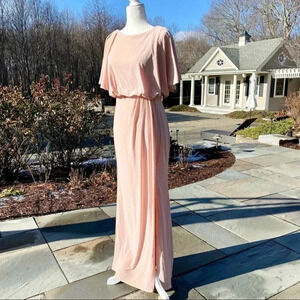 NWT Anthropologie BHLDN Lena Jersey Flutter Sleeve Maxi Dress Wedding MOB Pink