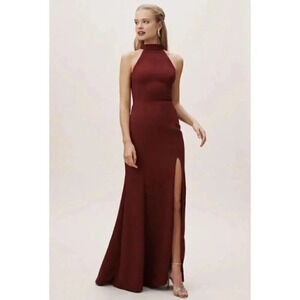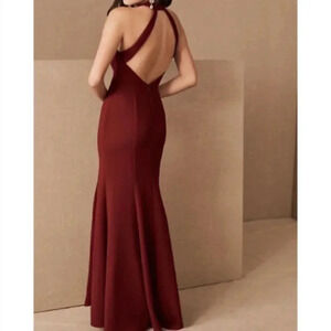 NWT Anthropologie BHLDN Montreal Maxi Dress Long Halter Cocktail Red Bordeaux