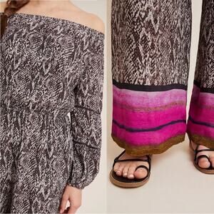 NWT Anthropologie BLNK Periza snakeskin off the shoulder wide leg jumpsuit XS