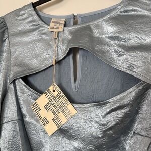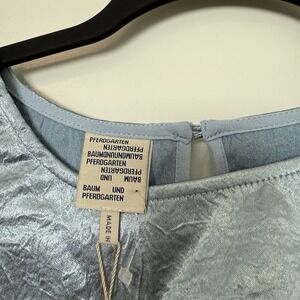 NWT Anthropologie Baum Und Pferdgarten Marcy Top Satin Size US 6 Blue Fog Blouse