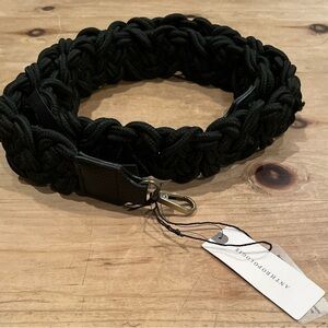 NWT Anthropologie Black Braided Leather brass hardware strap OS