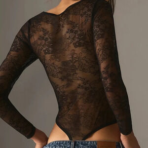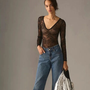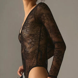 NWT Anthropologie Black Lace V-Neck Bodysuit Medium