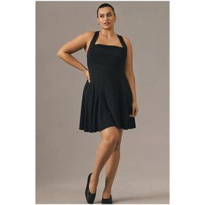 NWT - Anthropologie Black Ruched Square-Neck Dress - L