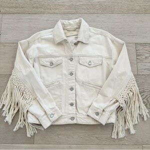 NWT Anthropologie Blank NYC Sacha High Key Fringe Denim Jacket Size XS