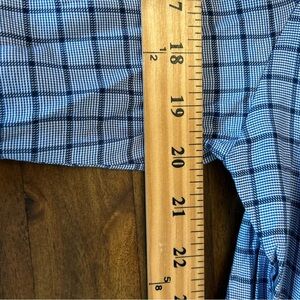NWT Anthropologie Blue Plaid Off the Shoulder Peasant Top Bell Sleeve Large 0035