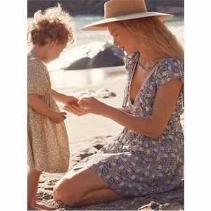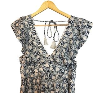 NWT Anthropologie Blue White Motif Floral Mini Dress with Plunge V Neck Size XS