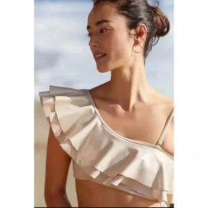 NWT Anthropologie Boamar Ruffle Cut Out One Piece Swimsuit Gold Shimmer Swim