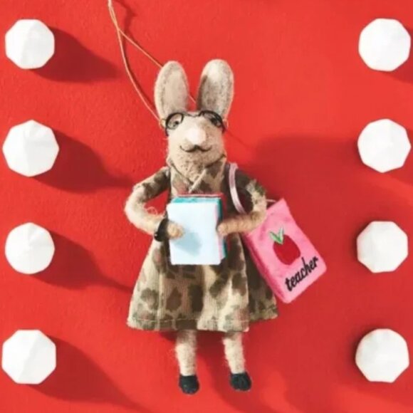NWT Anthropologie Busy Bunnies TEACHER Felt Ornament