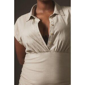 NWT Anthropologie Cap-Sleeve V-Neck Dress 2X Midi $168 Linen Blend Tan