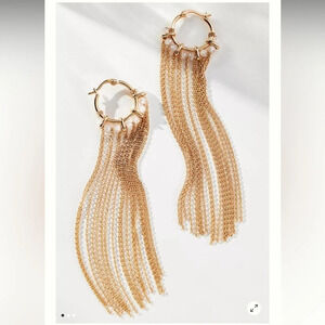 NWT Anthropologie Chain Hoop Gold Earrings - 3.5” hang