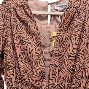 NWT Anthropologie Charlie Holiday Whitney Maxi Dress Cotton Animal Print Brown M