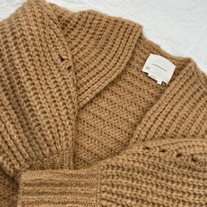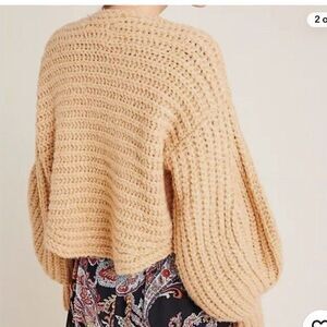 NWT Anthropologie Chunky Knit Cropped Tan Plush Sweater size Small
