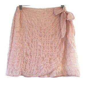 NWT Anthropologie Cloth & Stone Pink and White Seersucker Wrap Mini Skirt