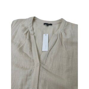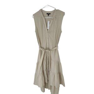 NWT Anthropologie DREW Cotton Sun Dress White/"Stone" High-Low Button Midi Small