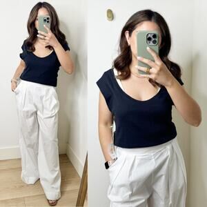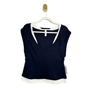 NWT Anthropologie Daily Practice Ariel Tank Short Sleeve Top Black White XL