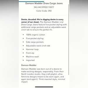 Denim, decoded: We're digging denim in every corner of our closet. The Damson Madder viral Drew Cargo Jeans feature five-pocket styling with additional cargo pockets and an adjustable waist cinch tab to ensure the perfect fit.