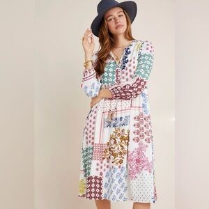 Anthropologie Daniel Rainn Westerly Patchwork Midi Dress Size XSP