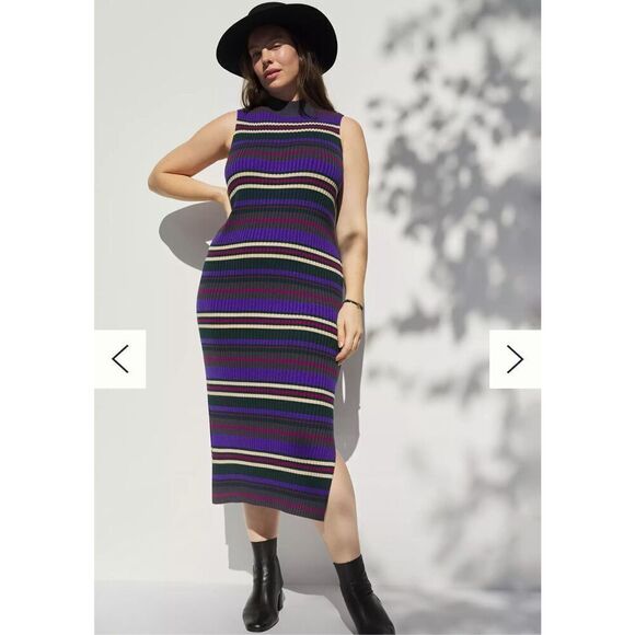 NWT Anthropologie Dolan Anne Ribbed Purple Striped Mock Neck Midi Dress 2X