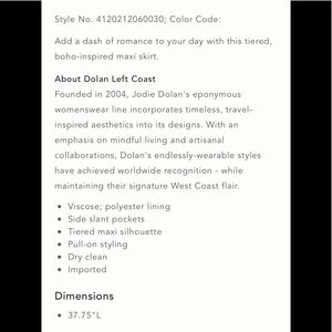 NWT Anthropologie Dolan Freja Tiered Maxi Skirt size small