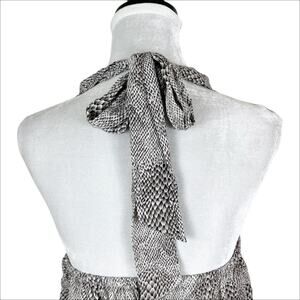 New with tags. Anthropologie Drew Silk Python Print Drape Front Halter Tunic Top. Brown and white snake print. Drape detail in front. Ties at neck. Elastic at back. Long tunic length. 100% silk. Size XS.