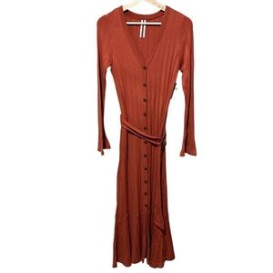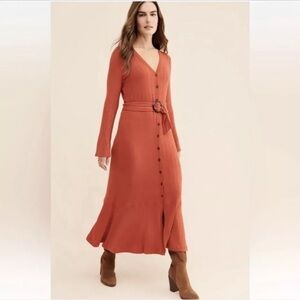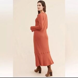 NWT - Anthropologie Elsa Orange Button UpBell Sleeve Sweater Midi Dress Small