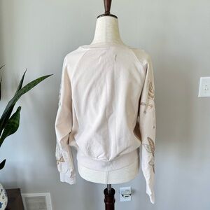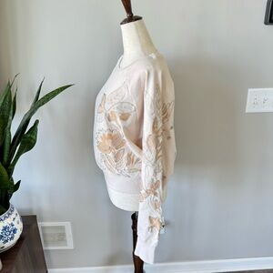 NWT! Anthropologie Embroidered Sweatshirt Bead Embellishments - Cream Neutral