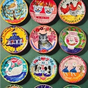 NWT Anthropologie Emily Maude 12 Days Christmas Calling Birds Dessert Plate