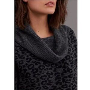 New with tags. Anthropologie Emmy Cowl Neck Tunic Sweater. Black and grey leopard animal print. Super soft and cozy, oversized fit. Wool and Yak blend. Size XS