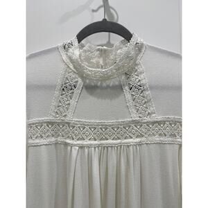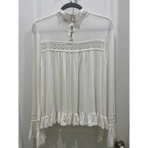 NWT Anthropologie Eri + Ali White Rayne Swing Top Long Sleeve Ruffle Hem Sz M