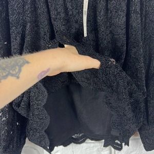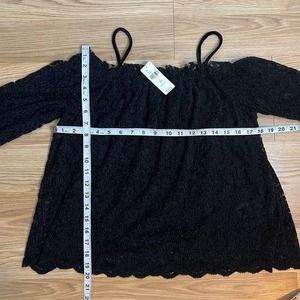 NWT It’s a beautiful piece with lovely details. The lace has a velvety quality to it, and shoulder straps are velvet. Very soft, not scratchy. Elastic around the shoulders is stretchy and comfortable, but stays in place. Relaxed fit overall. Has a camisole underneath so it is not see through. Luckily the camisole doesn’t pull weird like other similar pieces I have tried. You can tuck the camisole in to a high waist pant and then have the lace overlay, or just leave the top out for a flowy look. See picture for measurements, however note length is more than shown since this has shoulder straps.