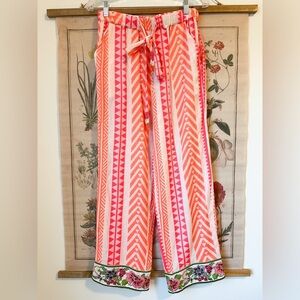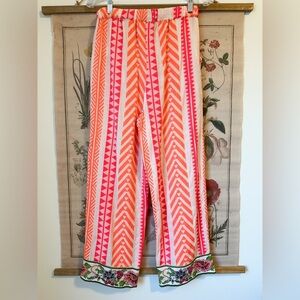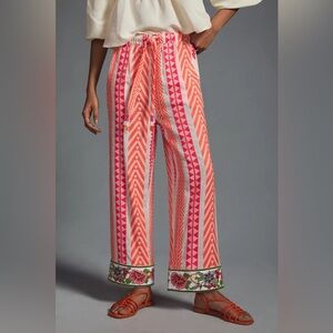NWT Anthropologie Farm Rio Geometric Floral Embroidered Striped Pants Pink XS