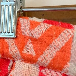 New with tags with small flaws. Two small marks on the front right leg. Marks from a hanger on the waistband. See last three photos.