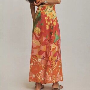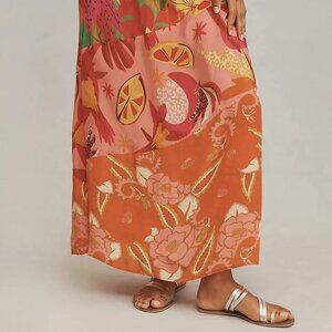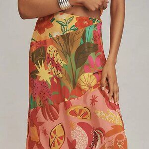 NWT Anthropologie Farm Rio Orange & Pink Tropical Floral Midi Skirt Sz. XS
