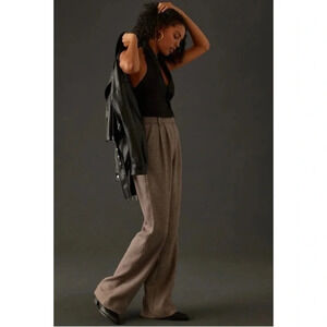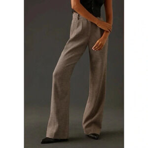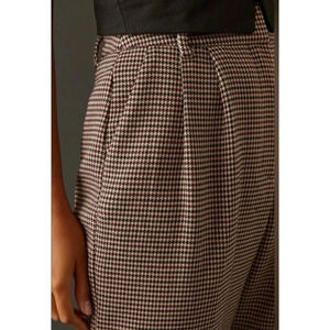 high rise, high waisted, trousers, casual, work, office, pleat, pleated. hounds tooth, full length, wide leg, flare, anthro, check, checkered favorite daughter pants, wide leg trousers, chocolate houndstooth, anthro pants, high rise pants, pleated pants, brown check trousers, office work pants, relaxed fit trousers, wide leg dress pants, full length pants, flare trousers, tailored pants