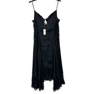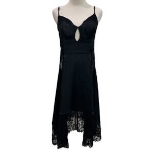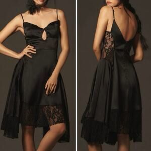 NWT Anthropologie Fit & Flare Cutout Satin Mini Dress In Black