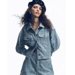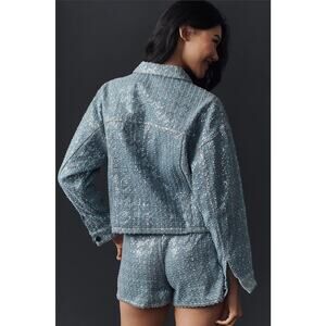 Add a touch of sparkle to your wardrobe with this NWT Anthropologie Flat White Sequin Denim Jacket! This stunning jacket features:
