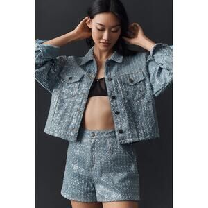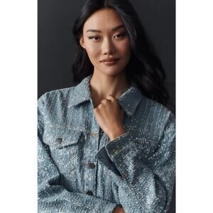 NWT Anthropologie Flat White Sequin Denim Jacket - Size Large