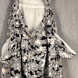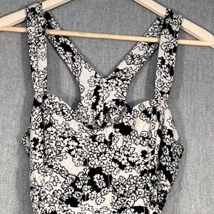 elastic waist criss cross back open back black white lined feminine casual party holiday angelcore contemporary boho bohemian pattern two tone neutral preppy quiet luxury resortwear spring summer fall tropical linen cotton viscose travel beach sun sand vaca vacation cute dainty spaghetti strap elegant classic classy old money anniversary special occasion whimsigoth rockabilly juniors women girl teen mcm mid century modern cottagecore cottage coastal a line a-line breathable print dainty elevated staple wardrobe simple black motif flowers stretch stretchy woven sustainable natural hippie indie smock smocked