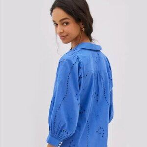NWT Anthropologie Forever That Girl Puff Sleeve Blue Eyelet Blouse Size S