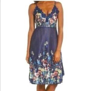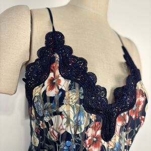 NWT Anthropologie Foxiedox Cami Midi Dress Slip Size S Floral Print Navy Blue