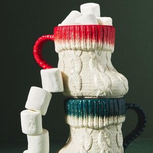Inspired by warm winter knits and cozy holiday mornings, this stocking mug is a festive vessel for your hot cocoa, mulled wine, or morning cup of coffee.