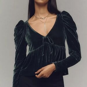 NWT Anthropologie Green Velvet Babydool Top Size Medium