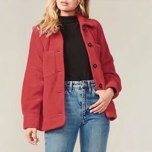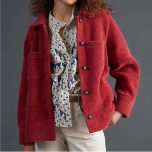 NWT Anthropologie Greylin Houndstooth Fuzzy Shirt Jacket In Pink
