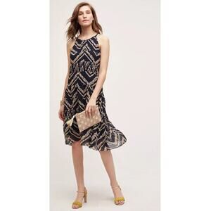 NWT Anthropologie HD in Paris Rococo Blue Floral Puckered Tiered Trapeze Midi Dress XS